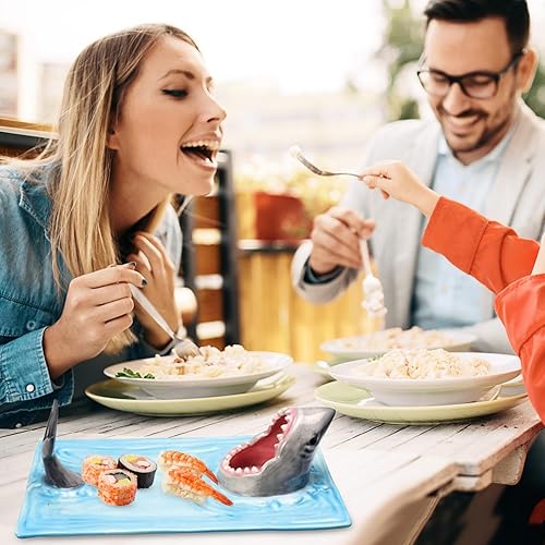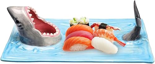 Assiette de service à sushis en céramique en forme de requin - Plateau à sushi en porcelaine de style japonais - Plateau alimentaire pour sauce soja