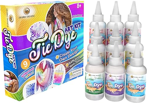 Desire Deluxe Kit de Teinture Tissu - Lot de 9 couleurs, Set d’Encre Tie Dye Kit pour Teinture Tissu et Vêtements - Activité Créative, Artistique et Ludique pour les Enfants et les Adultes