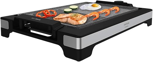 Cecotec Tasty & Grill 2000 Plancha électrique en acier inoxydable 2000 W, plaque RockStone antiadhésive, thermostat réglable, 5 niveaux de puissance, amovible, passe au lave-vaisselle (3094)