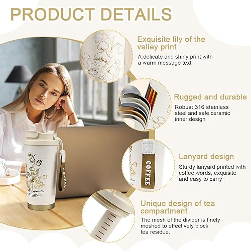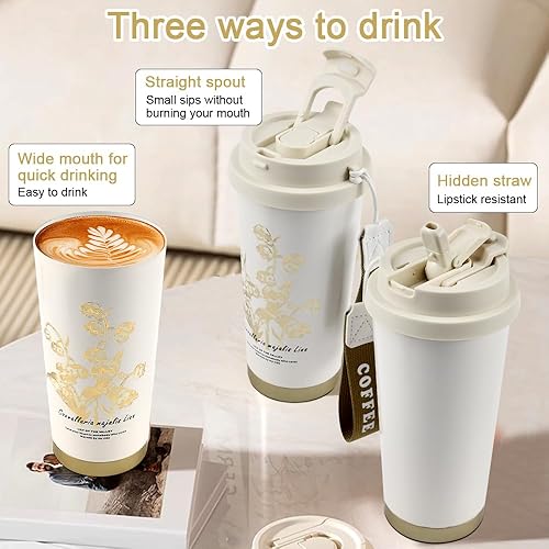 YBCCBY Tasse a Cafe Thermos Isotherme 530ML Thermo Coffee Mug-to-go Tasse Thermique à Emporter Thermos Café de Voyage Tasse Isotherme sans BPA en Céramique et Acier Inox pour pour les Boissons