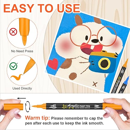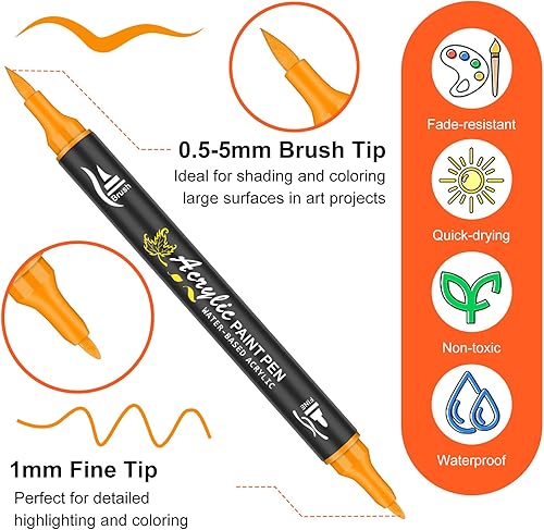 NICETY 128 Pcs Feutre Acryliques Peinture stylo - Acrylic Paint Marker pour Bois, Toile, Verre, Céramique - Marqueur Peinture Acrylique à base d'eau à 0.5~5 mm Double Pointe Fine & Pinceau