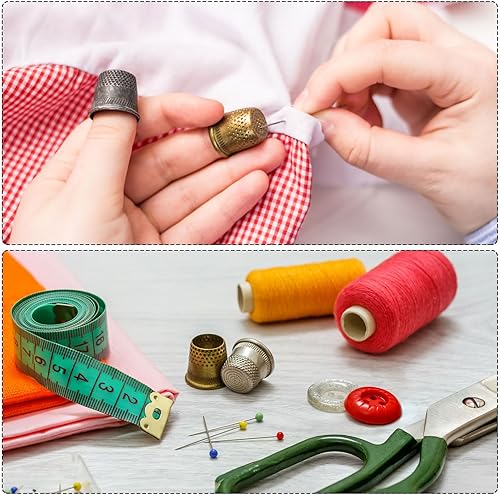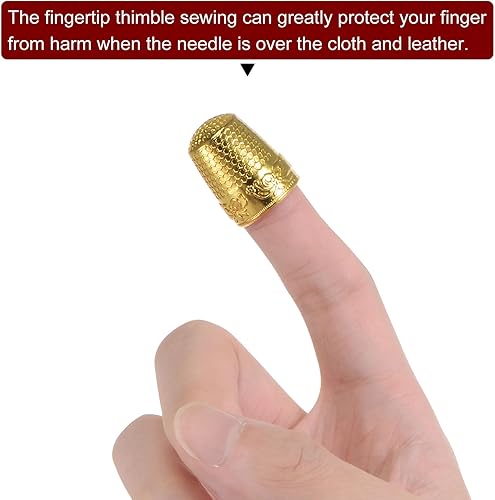 sourcing map 2pcs Couture Dé-à-coudre Cuivre Couture Dé-à-coudre Doigt Protecteur Doigt Bouclier Bout Doigts Matelassage Artisanat Broderie Accessoires DIY Main Travail Couture Outils, Doré