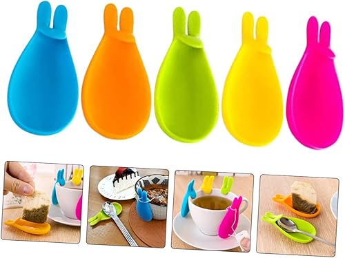 SHERCHPRY Lot de 5 porte-sachets de thé en forme de lapin en silicone - Porte-sachets de thé - Porte-tasse - Clip pour tasse - Marqueur