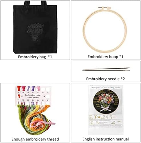 Dropfree Kit de DéMarrage de Broderie pour DéButants avec 1 Sac Fourre-Tout en Toile 1 de Cerceau à Broder et Aiguille-A