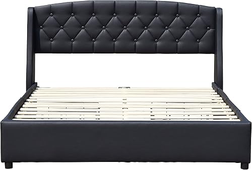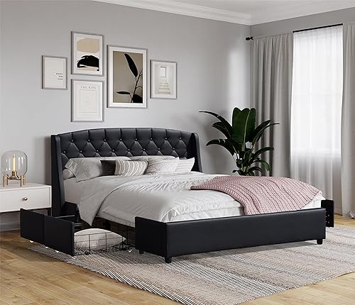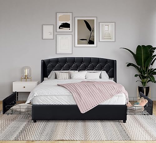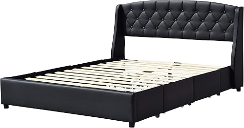 iris - Solide et Confortable Lit 120x190 avec Sommier avec 4 tiroirs + Tete de lit Couleur BLANC + Pieds en 4 cm - 13 Lattes - revetement PVC Simili facile d'entretien - Montage Rapide et Facile