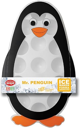Snips Bac à glaçons Mr Penguin, Moules à Glace, Plateau pour Moules à Glace, 15 Moules à Glace, 26 x 15,5 x 2,8 cm, Plateau pour Moules à Glace avec Couvercle, Made in Italy