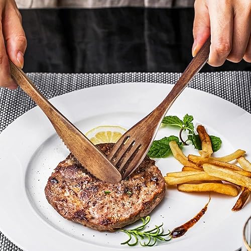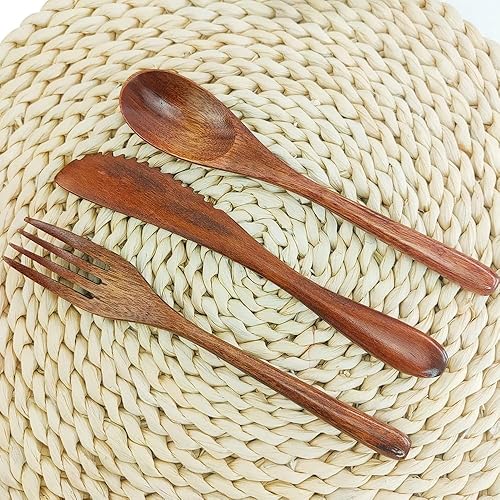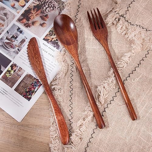 Bois Ensemble de Vaisselle,Couverts en Bois Vintage Pratique Vaisselle Café Thé Cuillère Couverts pour Cuisine Maison Restaurant(Couteau)