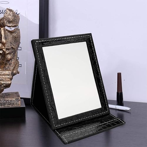 Miroir de Courtoisie Pliant, Miroir de Courtoisie de Bureau, Miroir de Courtoisie Noir Portable, Adapté au Transport de Bagages de Voyage, Bureau, Commode de Chambre