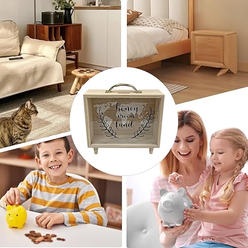 Tirelire Voyage/Rêve/Lune de Miel, Tirelire en Bois pour Pièces et Billets, Tirelire Adventure Boite a Pieces de Monnaie Tirelire avec Poignée, Tirelire Vacances Voyage pour Adultes Enfant