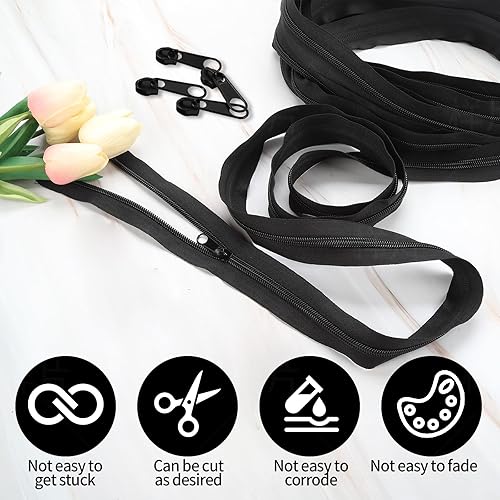 Richunie Fermeture Eclair au Metre avec Zip,Fermeture éclair, 5mm de Nylon Fermeture Eclair au Metre de 10 Mètre et 40 Zips Noirs en Métal pour Vêtements Sac Pochette Linge de Maison