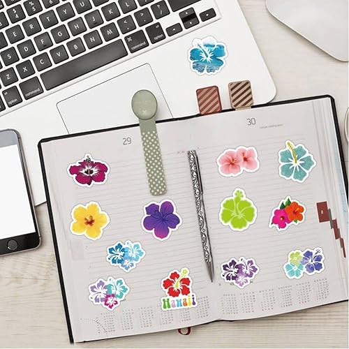 Fituenly Lot de 60 Autocollants Fleurs Hawaïennes, Graffitis, pour Bagages, Ordinateur Portable, Skateboard,