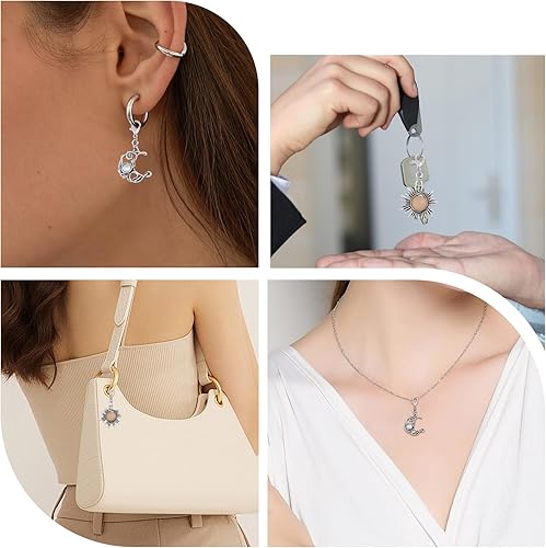 CHGCRAFT 20 pendentif Lune et Soleil 2 styles avec Fermoir Mousqueton en Alliage pour Fabrication de Bracelets Colliers Porte Clés Argent Antique