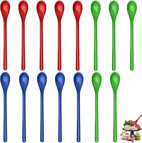 15 Pièce Cuillères à Long Manche, Cuillères en Plastique Colorées, Cuillères Plastique Réutilisable, Longues Cuillères à œufs, Café, Dessert, louche à soupe, Rouge, vert, bleu - 19 cm