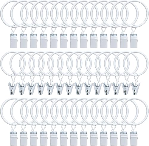 Lot de 44 anneaux de rideaux en métal avec clips, rideaux décoratifs antirouille vintage de 2,5 cm de diamètre intérieur, pinces à rideaux avec anneaux, doré