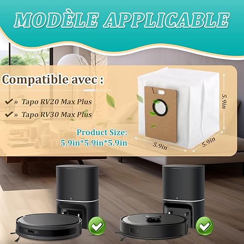 RongZy 4PCS Sacs à Poussière pour Tapo RV20 Max Plus/Tapo RV30 Max Plus Sacs à Poussière de Rechange pour RVA202 Robot Aspirateur Accessoires (3L)