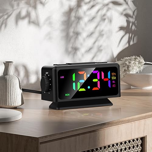 Radio Reveil Digital, Réveil Numérique, LED Horloge Digitale, avec 2 Modes d'Alarme, Minuterie, Réveil Digital avec Gradateur Continu, Volume de l'alarme Réglable, Snooze, 12/24H, Port USB (Noir)