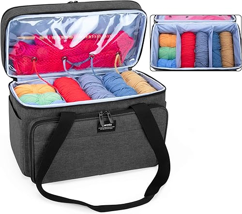 CURMIO Sac à Tricoter Double Couche, Sac Fourre-Tout pour Le Stockage des Aiguilles à Tricoter (Jusqu'à 14 Pouces), Crochets, Projets de Tricot et Autres Accessoires, Pois, Sac Seulement