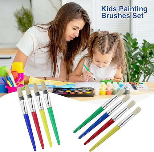Lot de 8 pinceaux de peinture pour enfants, pinceaux de peinture pour tout-petits, pinceaux ronds préscolaires pour enfants, étudiants, débutants