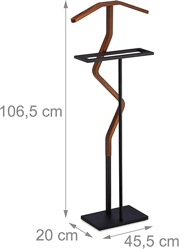 relaxdays Valet, pour Costume & Pantalon, mélange Bois-métal, Chambre à Coucher, Portant, 113x46,5x34 cm, Marron/Noir