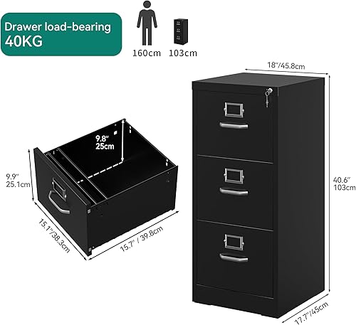 YITAHOME classeurs, Acier allié, Noir, 45,8 x 45 x 103cm(L x W x H)