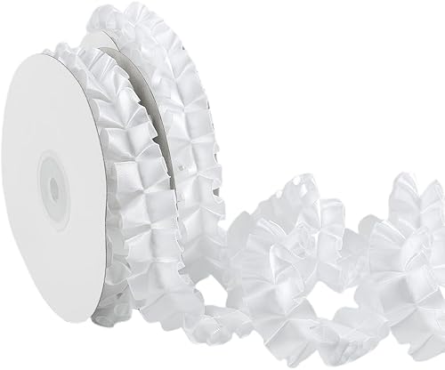 CABODYALS Ruban Plissé Vert Vintage de 9.14 m et 25mm Bordure en Dentelle à Volants Double Face Froncé pour Couture Fabrication Artisanale Bouquets de Mariée Robes Fournitures de Bricolage