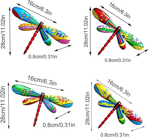 Zayookey 4 Pièces Metal Dragonfly Wall Hanging Coloré Métal Libellule Mur Art Sculpture Décorations pour Salon, Maison, Chambre, Jardin, terrasse, Porche ou clôture (E)