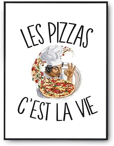 Planetee Affiche Pizza c'est la vie | Poster Tableau Sport Humour pour décoration murale qualité papier Premium A4
