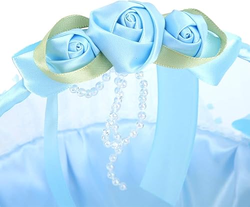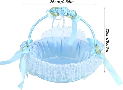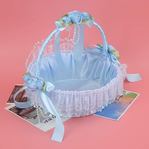 Panier de Fille de Fleur de Mariage, Panier de Fleurs en Dentelle élégante avec Poignée Panier-cadeau de Bonbons pour les Fournitures de Fête de Banquet de Mariage D'anniversaire(Bleu)
