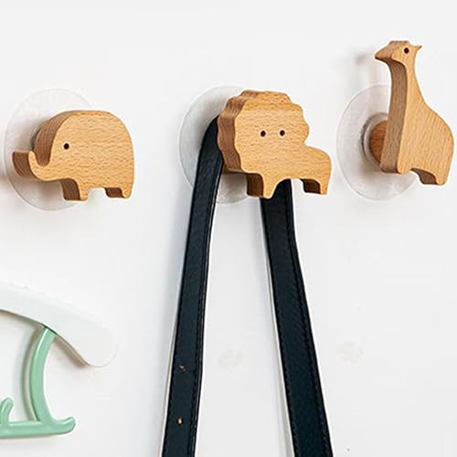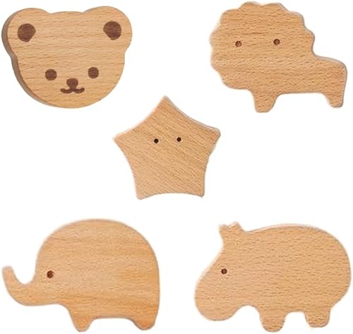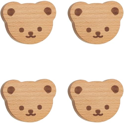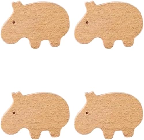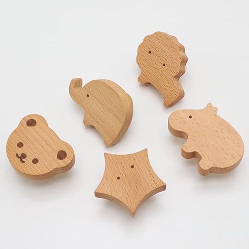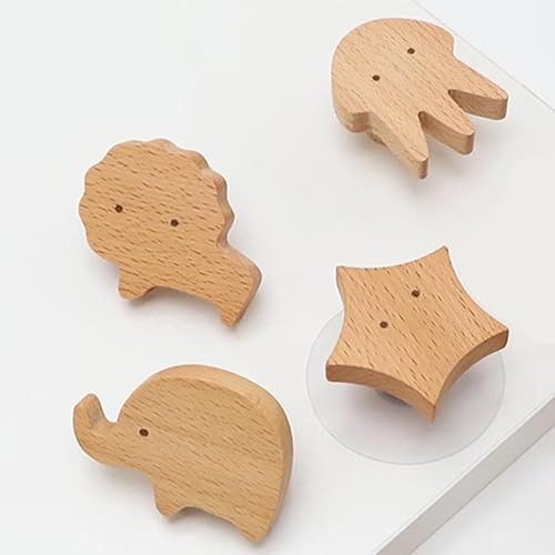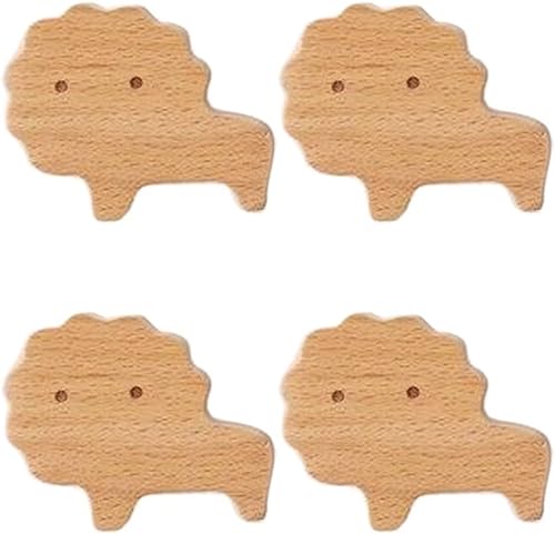 Lot de 4 crochets muraux en bois en forme de lion en bois pour chambre d'enfant, commode, tiroir, placard