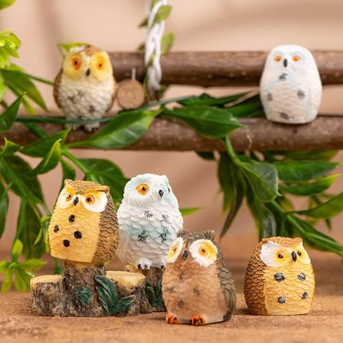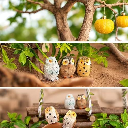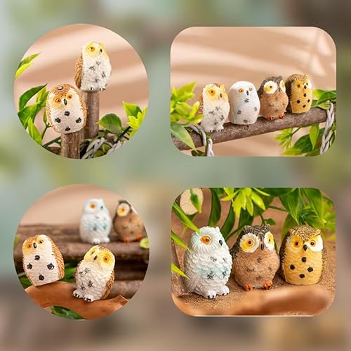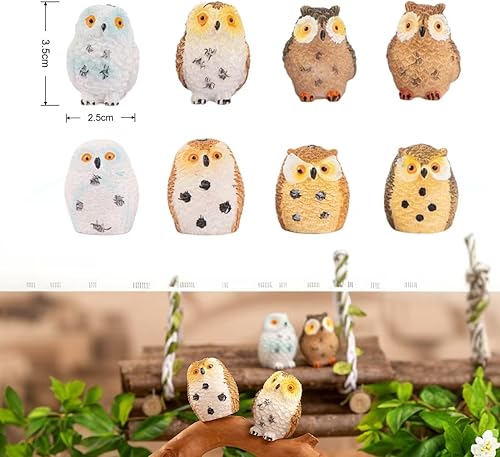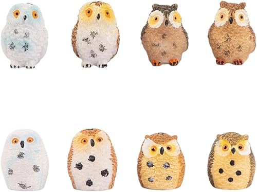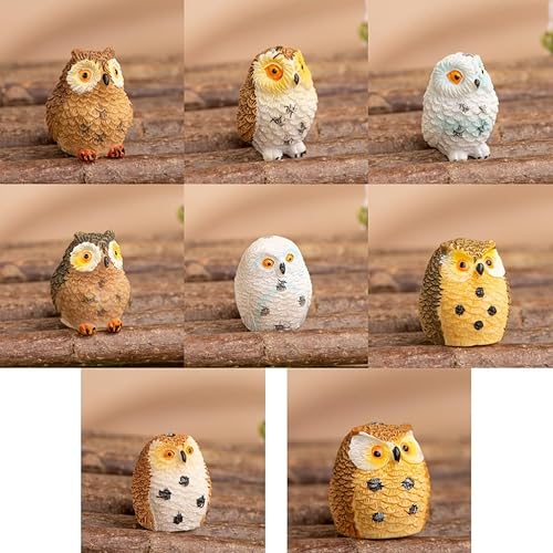 Syrvnto 8 Pièces Figurines Miniatures Chouette en Résine, Décoration Bureau, Micro Paysage et Jardin Féerique, décoration de gâteau, Petits Hiboux Design Réaliste pour Maison de Poupée