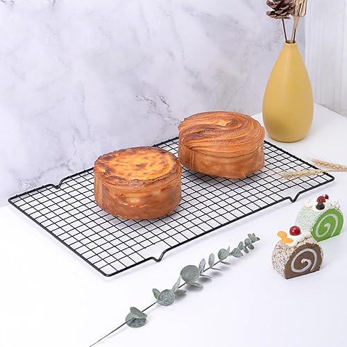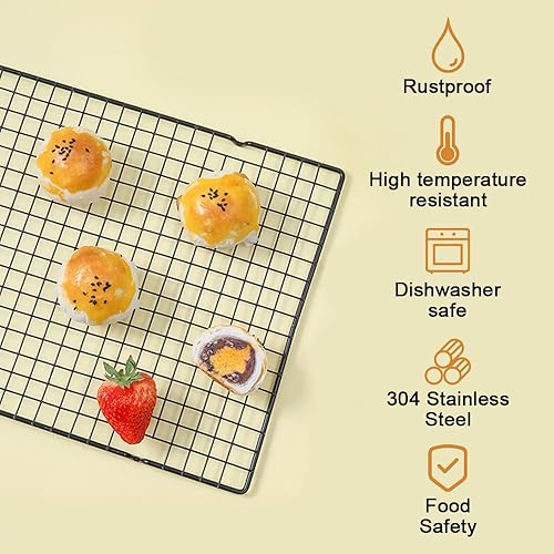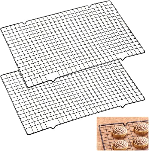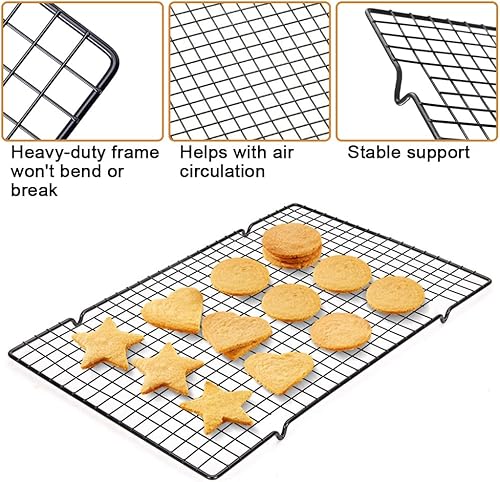 2 Pièces Grille de Refroidissement Patisserie en Acier Inoxydable Rectangulaires, 40cm X 25cm X 2mm avec Revêtement Antiadhésif pour la Cuisson Refroidissement, Barbecue, Cuisson et Plus, Noir