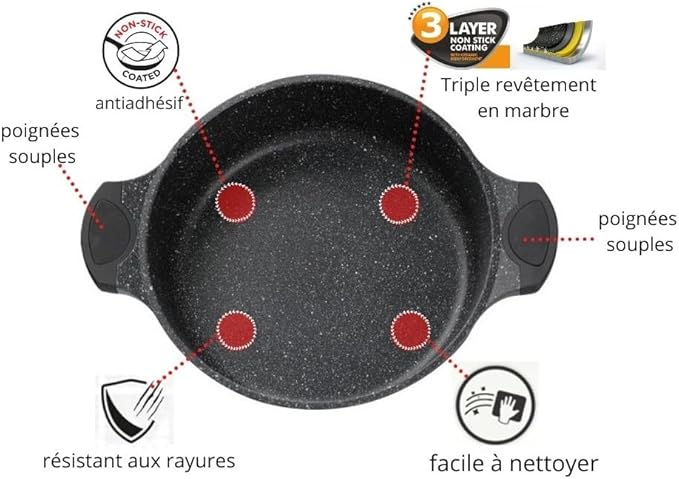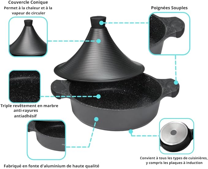 Cflagrant® Tajine Marocain Façon Pierre Induction avec Couvercle Revêtement sans PFOA en Greblon C3+ de Technologie Allemande (32cm)
