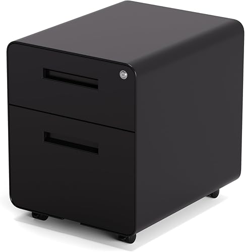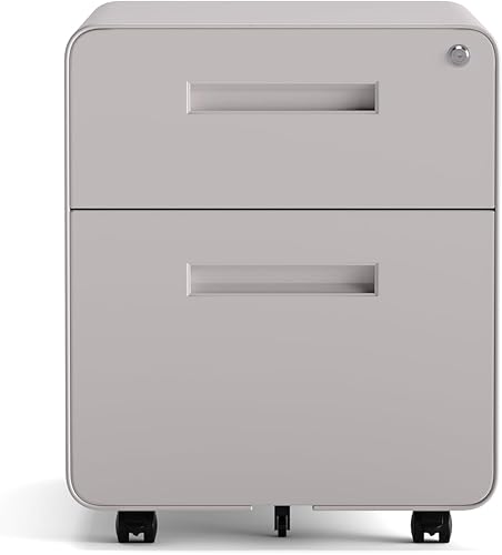 kenoko Caisson de Bureau Mobile Design Moderne ISHI avec 2 Tiroirs | Meuble Rangement Bureau | Métal Robuste | roulettes avec Blocage | Caisson sur roulettes | 40x50x45 cm | Couleur: Blanc