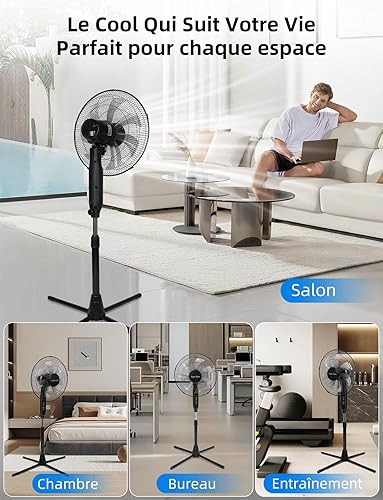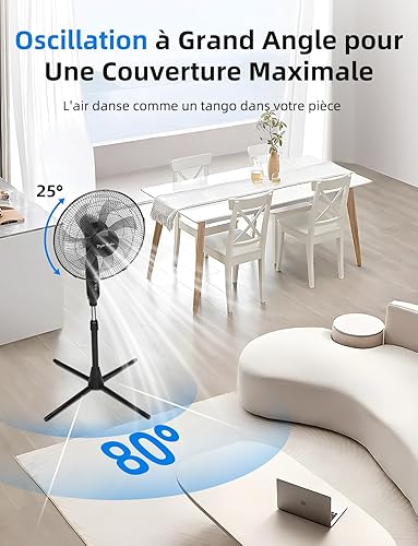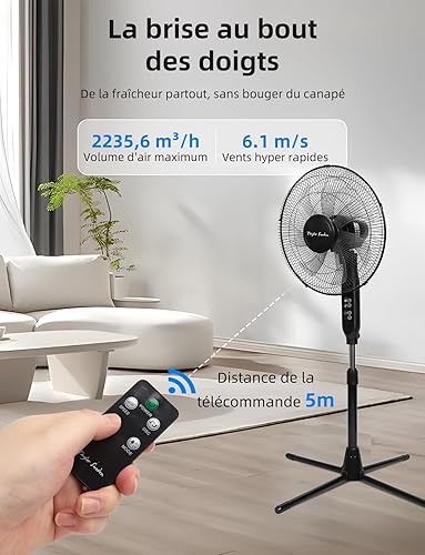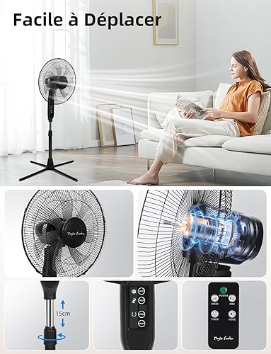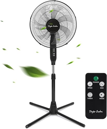 Taylor Swoden Ventilateur sur Pied avec Télécommande, Minuterie 9h, 50W Ventilateur Silencieux Puissant, 3 Modes/3 Vitesses, Affichage LED, 7 Pales Oscillantes 90°, Hauteur Réglable 111-126cm