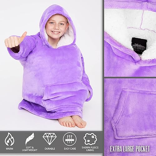 CityComfort Sweat à Capuche Enfant Fille - Pull Fille Polaire Oversize Doux (Violet)