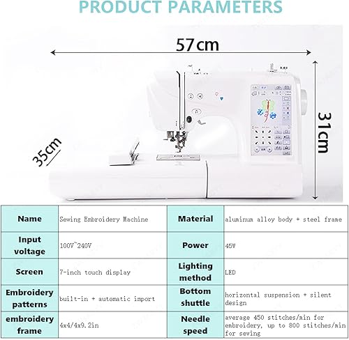 Qiang Machine à Broder Numérique Informatisée Brodeuse électrique Machine a Coudre Automatique Machine à Coudre De Broderie avec écran LCD 7' Et Port USB