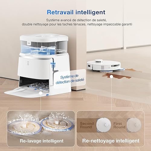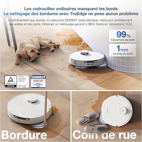 ECOVACS Robot Aspirateur Laveur DEEBOT T30 Pro Omni Mini Station, Nettoyage Humide adaptatif TruEdge, ZeroTangle, 11 000 PA, Nettoyage des serpillières à l'eau Chaude, Nettoyage en Profondeur
