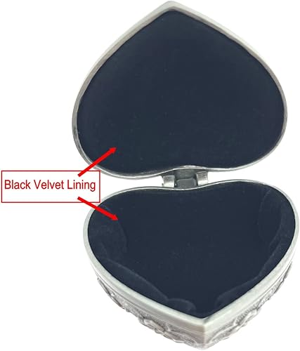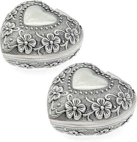 JZK Lot de 2 petites boîtes à bijoux en métal velours avec couvercle, style victorien sculpté, vintage, en forme de cœur, pour bijoux, souvenirs, boucles d'oreilles