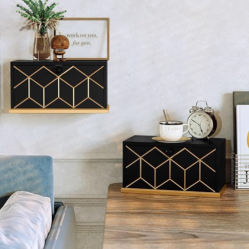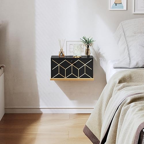 HOLTICO Lot de 2 tables de chevet en bois noir - Étagère flottante - Étagère murale pour chambre à coucher, chambre d'enfant, cuisine - Petite décoration