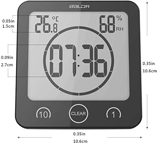 Soddyenergy Horloge de douche numérique LCD - Horloge de salle de bain étanche - Minuteur de température et d'humidité - Minuteur de cuisine (Noir-2)