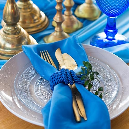 QUARKZMAN 12 Pièces de Serviettes de Table en Satin Bleu Profond en Polyester, Carrées, Brillantes, pour Décoration de Table d'Événement de Mariage, 17×17 Pouces