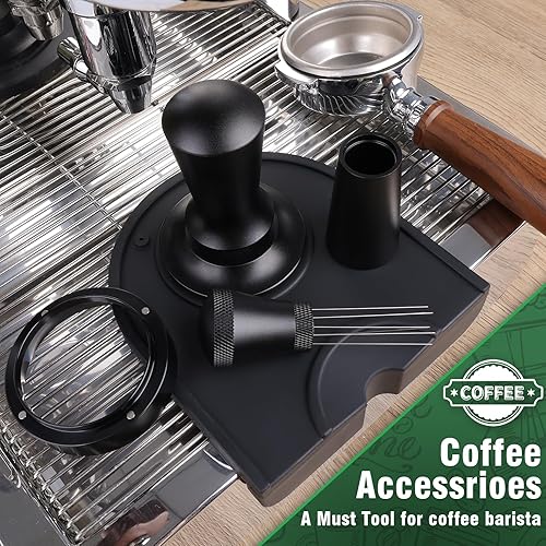 Tamper à café de 54 mm avec outil WDT, bague de dosage 54 mm, tapis tamper, tampon régulateur de pression de 54 mm en acier inoxydable avec base Ripple, aiguille à expresso WDT Tool améliorée avec 7
