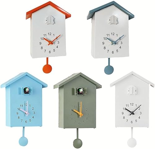 CARMOTTER Horloge à coucou, horloge murale à coucou, voix d'oiseau naturelle ou appel à coucou, horloge design pendule, maison à oiseaux, horloge murale vintage avec appel d'oiseaux (blanc)