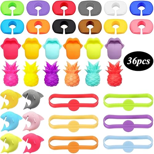 Gativs Marqueurs de Verre à Vin en Silicone 36 Pièces Marqueurs de Boisson Marque-Verres Marqueurs de Verre Réutilisables Marqueurs de Tasse Verre Marqueur Identificateur de Verre à Vin Bouteille