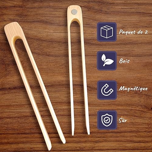 Pinces en bois de bambou, pinces à grille-pain, bâtonnets de cuisson pour salades, barbecue, grillades, cuisson, pâtisserie, friture, pâtisserie, pains, bagels et friandises (lot de 2)