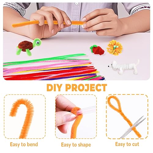 Yanghad 200 Pièces Cure-Pipes Colorés pour Travaux Manuels, 8 Macaron Fil Chenille, Fil en Peluche Pliables, Cure Pipe 30 cm x 6 mm, Projets de Bricolage pour Enfants