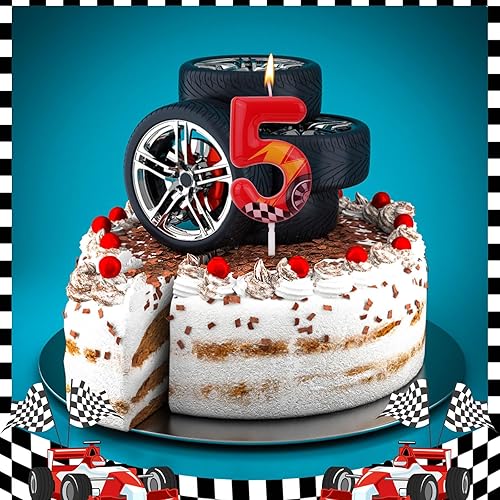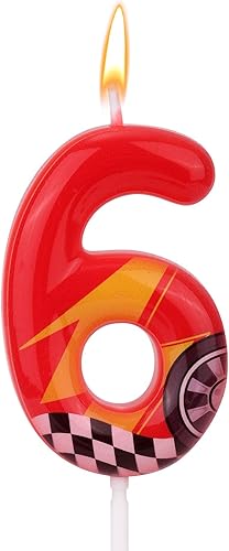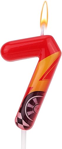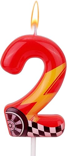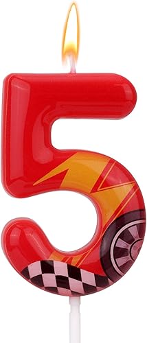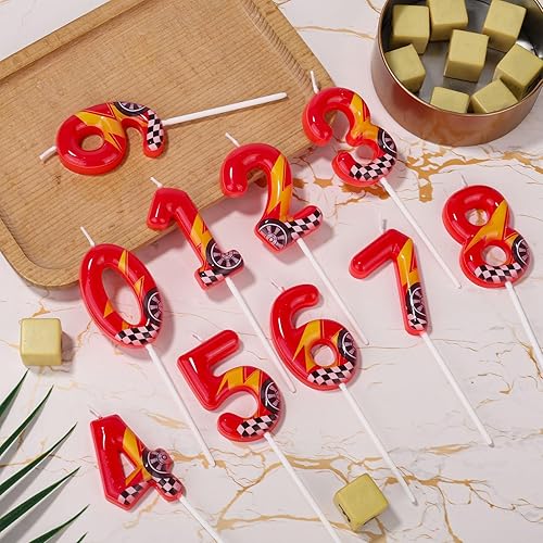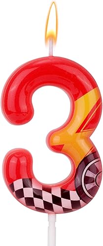 Bougie d'Anniversaire Thème Voitures Course, Bougie Numéro Forme Voiture Course Rouge Décoration Gâteau Parfaite pour Anniversaires et Fêtes à Thème(Numéro 3)
