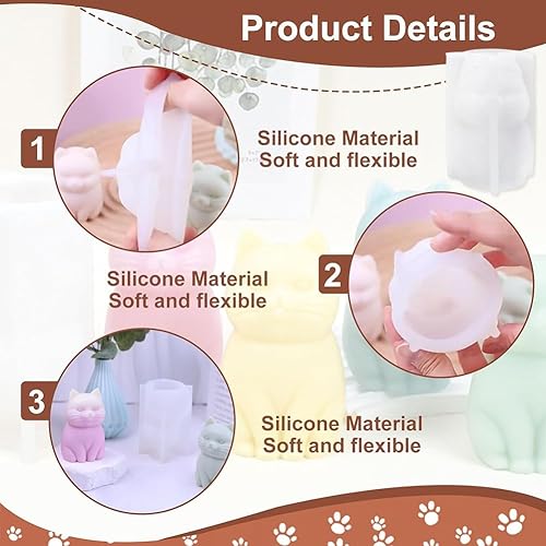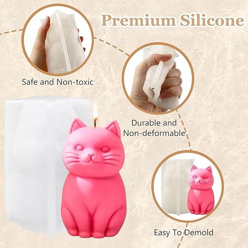 XNAUVOI Moule Silicone Chat,3D Moule en Silicone Chat,Moule Bougie Silicone,Moule en Forme D'animal Mignon,Moule à Pâtisserie Chocolate Candy