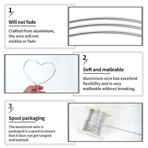 2mm Fil Aluminium 10m Fil de Fer Souple, Fil de Bijoux Fil Metalique pour Bijoux, Objets Décoratifs, Art Floral, Sculpture, Modélisme de Vélo, Fabrication de Bijoux, Tissage et Emballage
