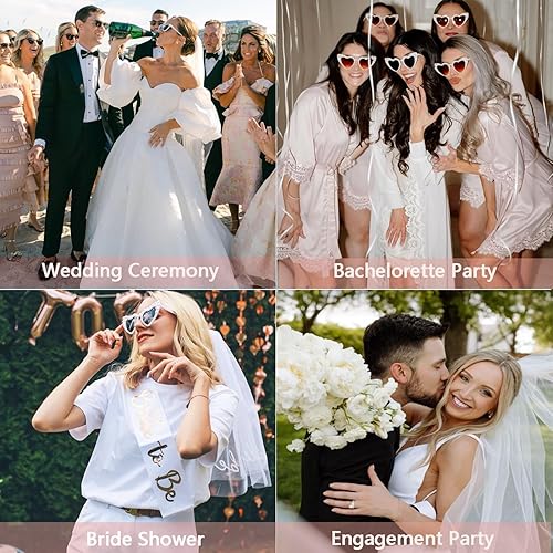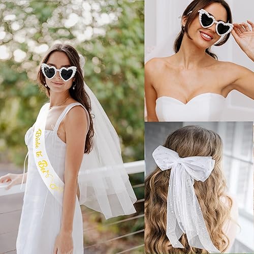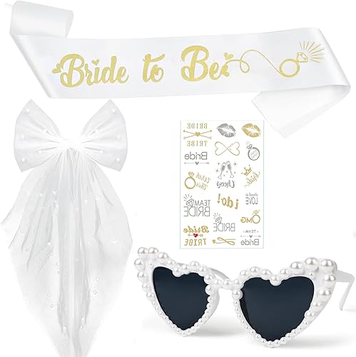 Accessoire EVJF Future Mariée Voile Blanc Écharpe Lunette Coeur avec Perles EVJF Tatouage- Kit Enterrement de Vie de Jeune Fille pour Fête Déguisement EVJF